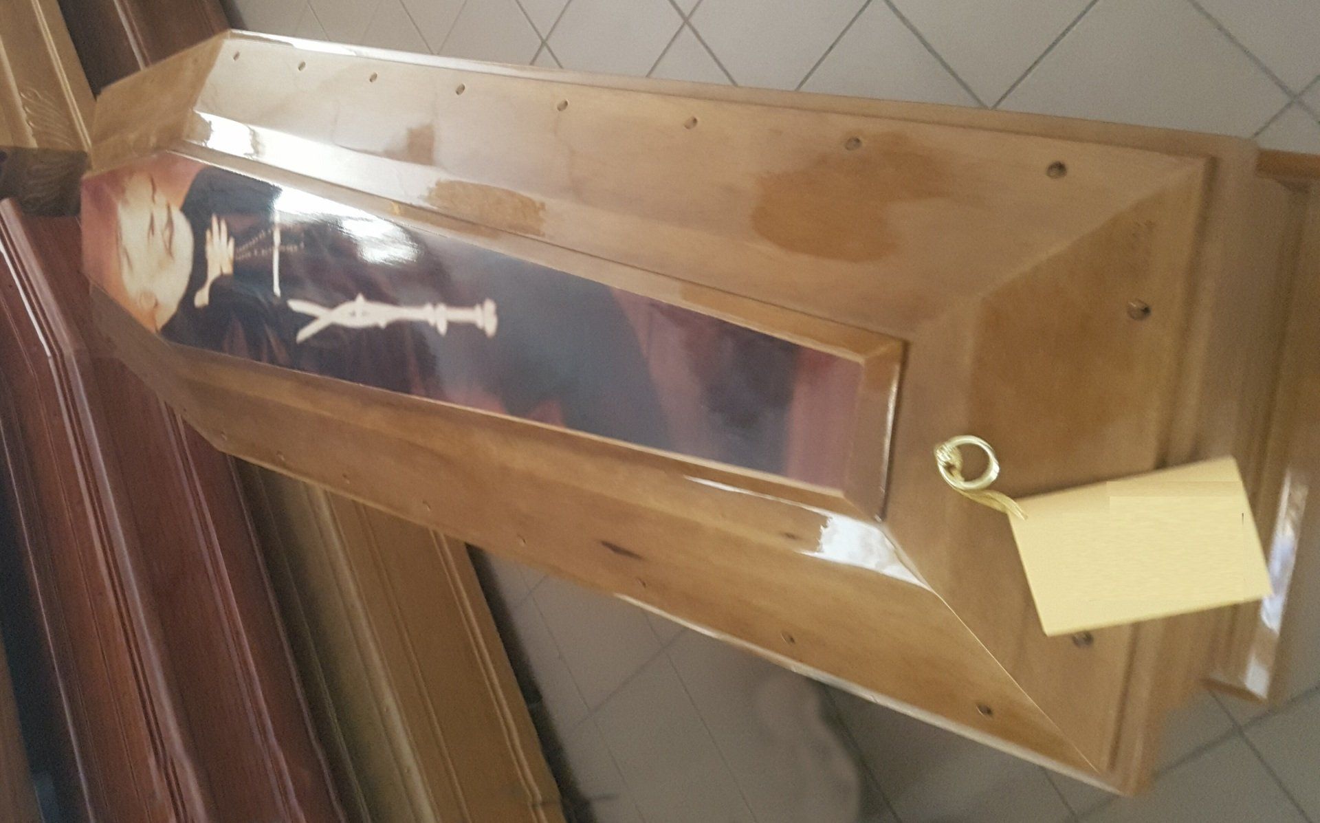 Presso la sede dell'agenzia di Bellante potrete sfogliare numerosi cataloghi di cofani funebri realizzati con diversi legni, tonalità, colori, forme, intagli, accessori (quali maniglie e crocifissi) e dimensioni adatte a qualsiasi misura. Disponiamo inoltre di cofani funebri equipaggiati con materassino e barriera biodegradabile per l'assorbimento dei liquidi, adatti a cremazioni e inumazioni, oppure equipaggiati con zinco a norma dotato di valvola depuratrice, in caso di tumulazioni.